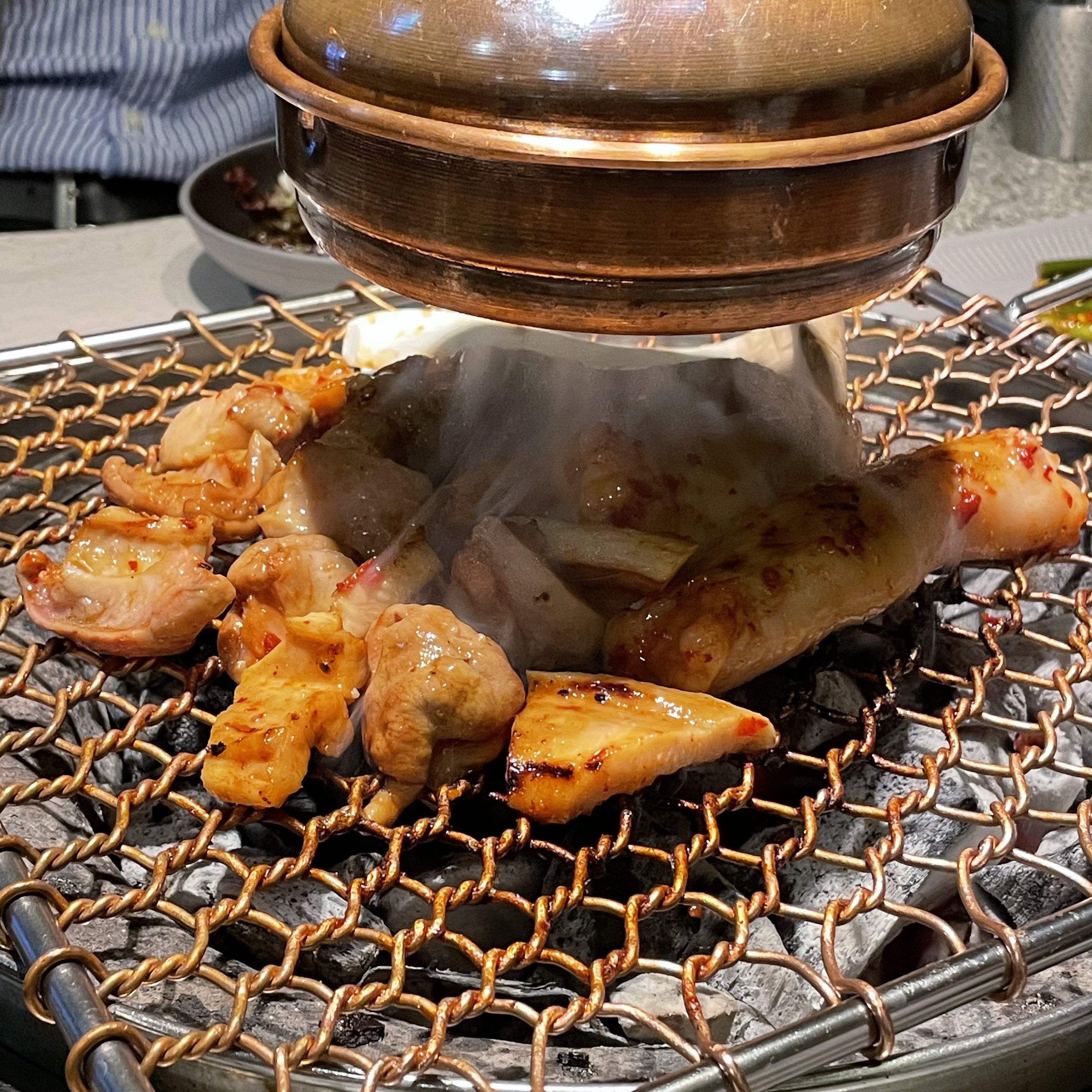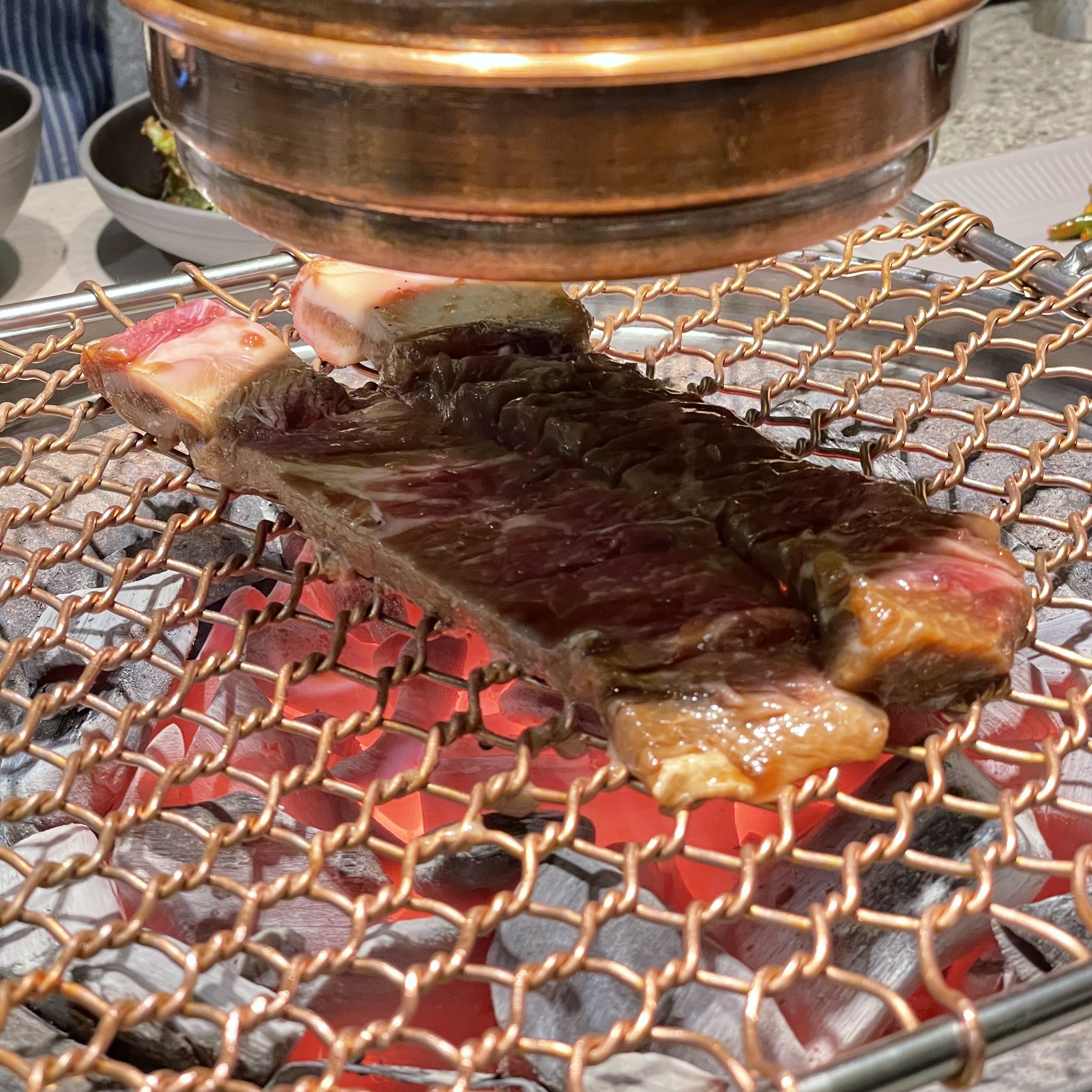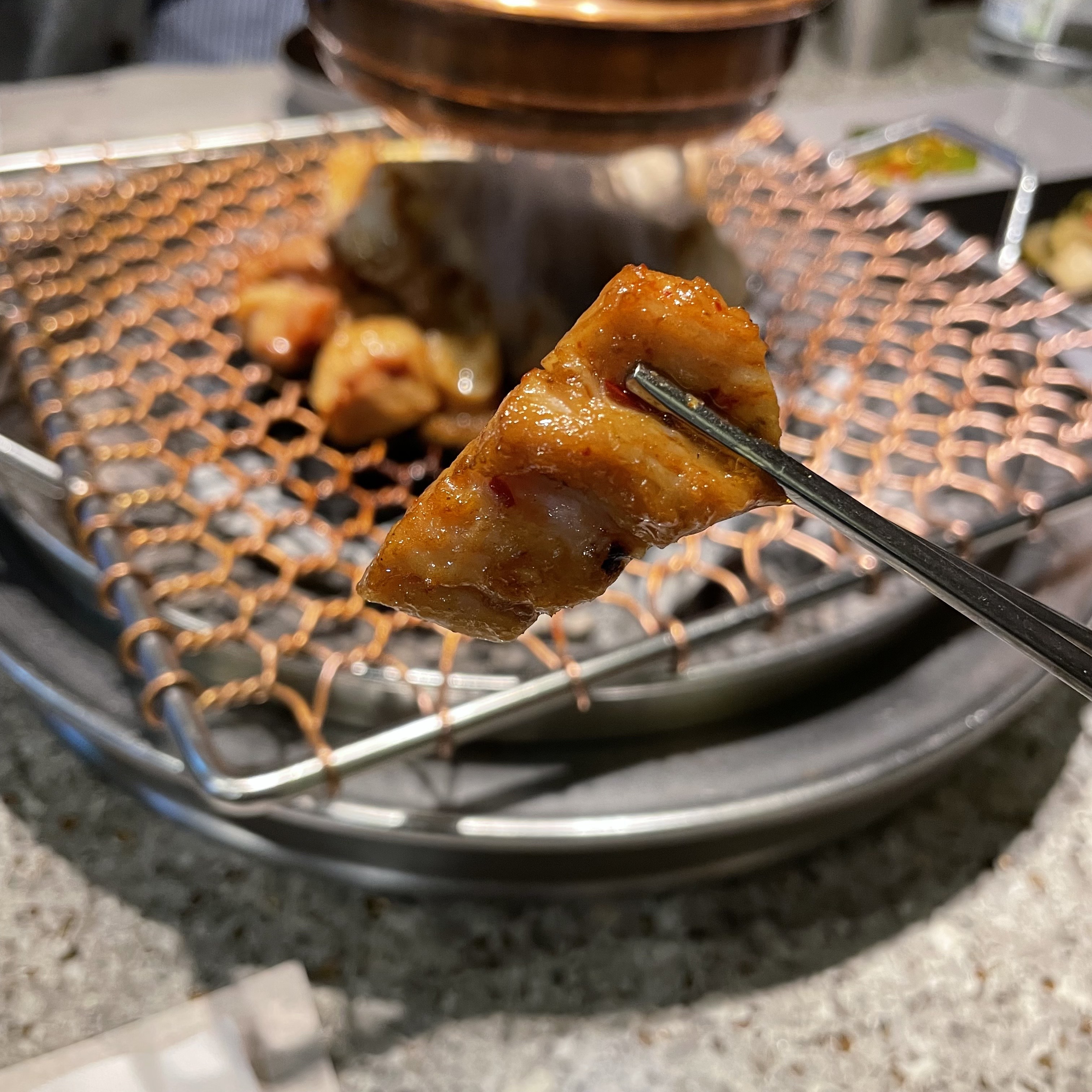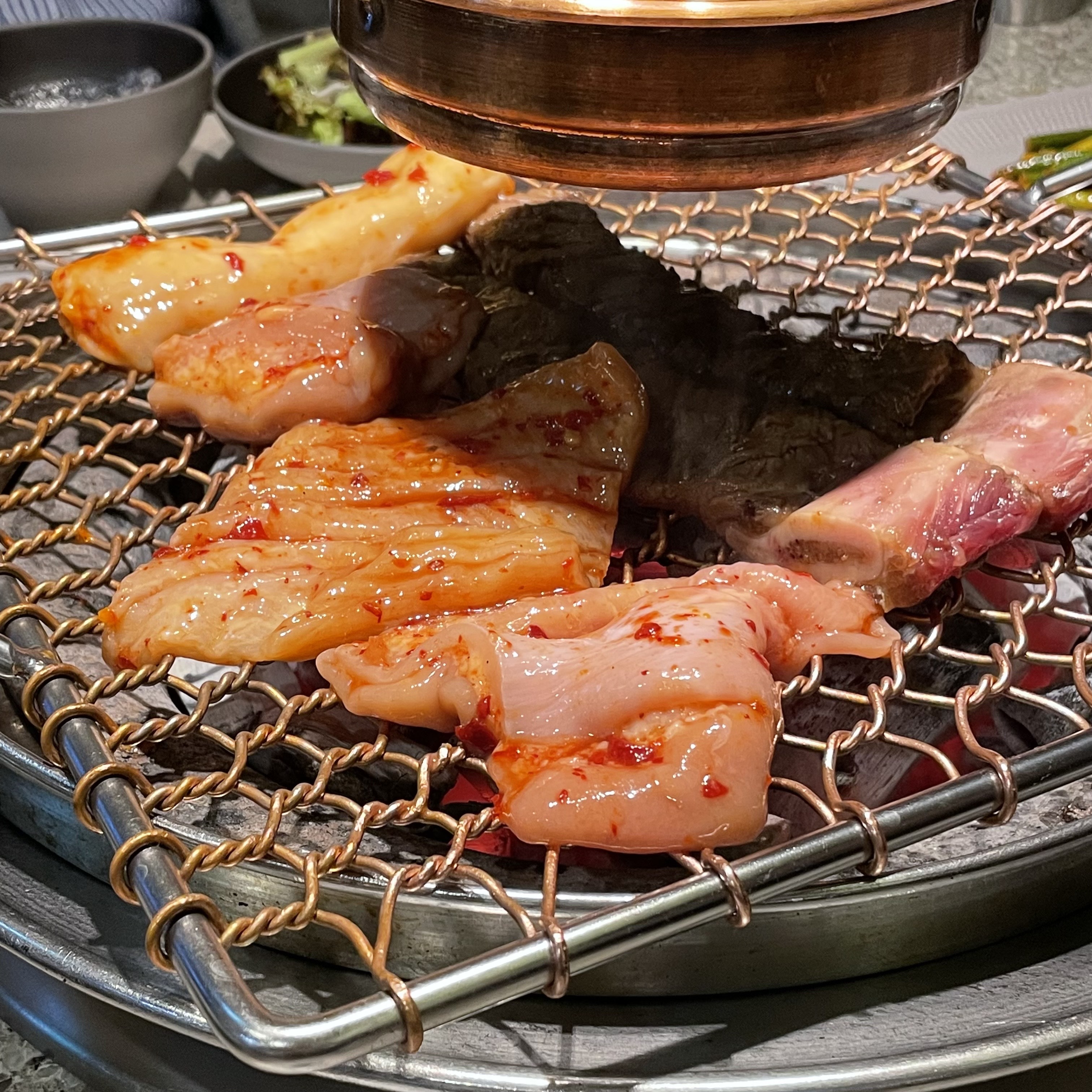 갈비보다 두꺼워서 익는데 시간이 걸려요. 양 다음에 대창도 먹었는데 먹는데 집중한 나머지 대창 사진을 찍지 못했어요. 그렇지만 정말 맛있다는 거...! 간장 베이스의 양념 같은데 겉보기엔 고춧가루가 있어서 매울 것 같지만 매운맛은 전혀 없어요. 숯불향이 가득 입혀져서 풍미도 좋고 정말 정말 입에서 녹아내립니다. 다 먹고 나면 불도 바로 정리해주셔서 덥지 않게 식사할 수 있어요.