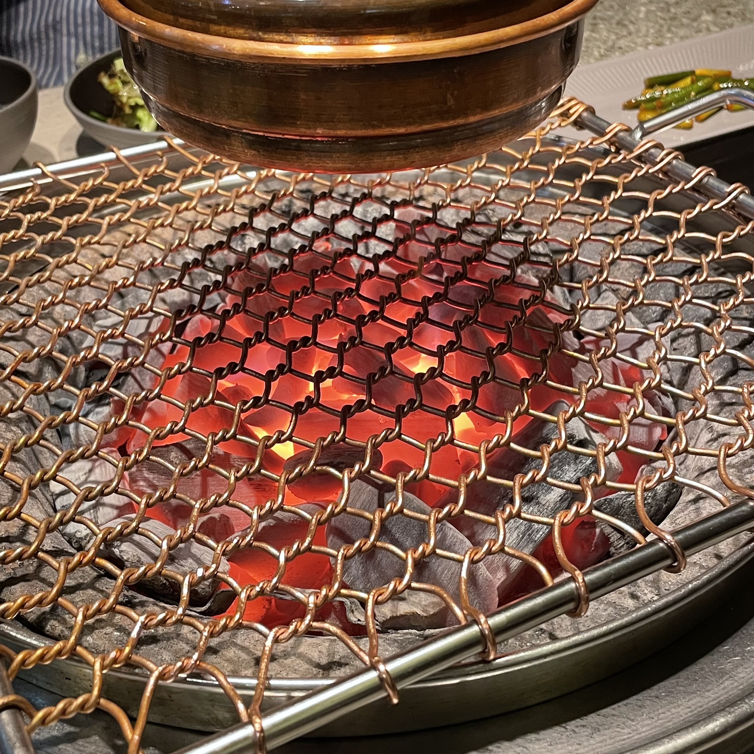 반찬 셋팅과 동시에 바로 나오는 숯불입니다. 세팅 속도가 어마어마하게 빠르셔요. 숯이 참 크고 색도 예쁘네요. 캠핑 가면 이렇게 숯 나오기가 쉽지 않은데 역시 전문점은 다른가 봐요. ^^